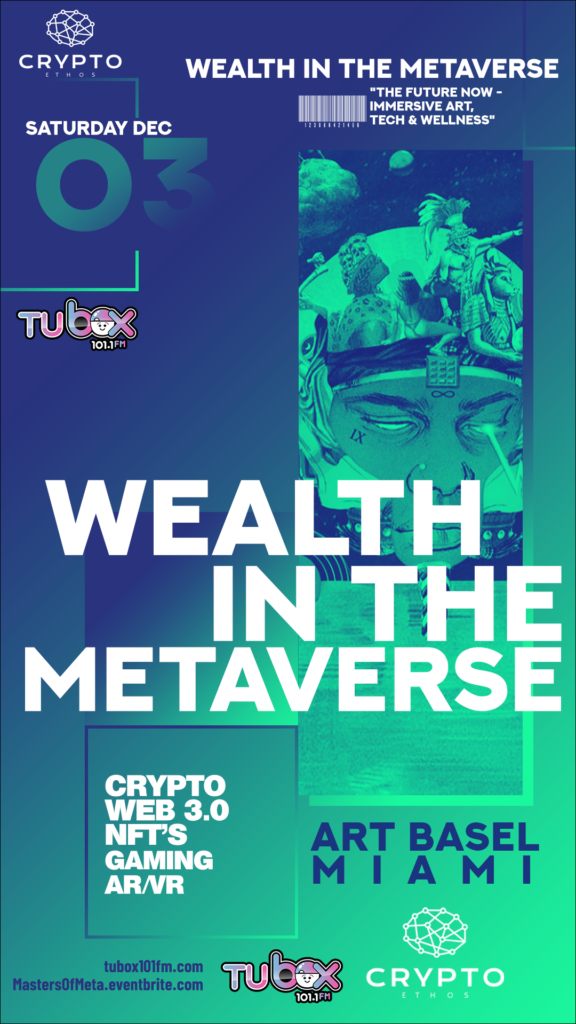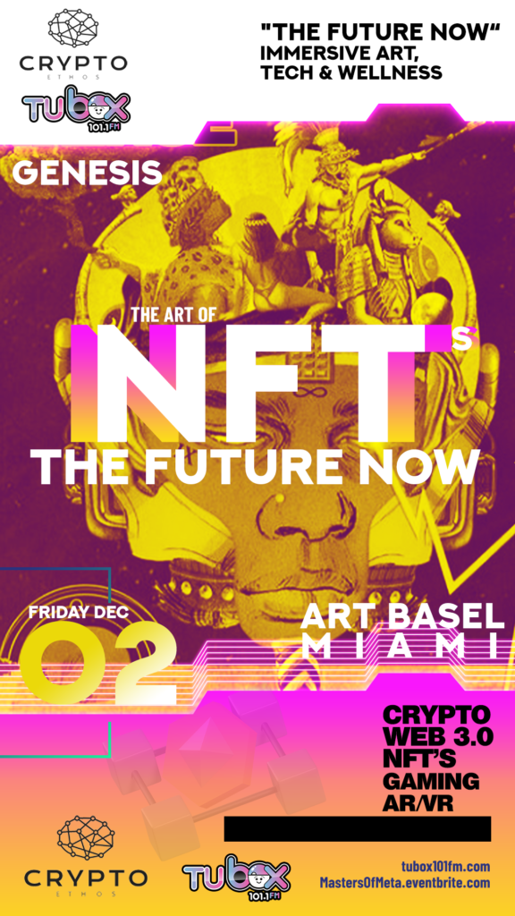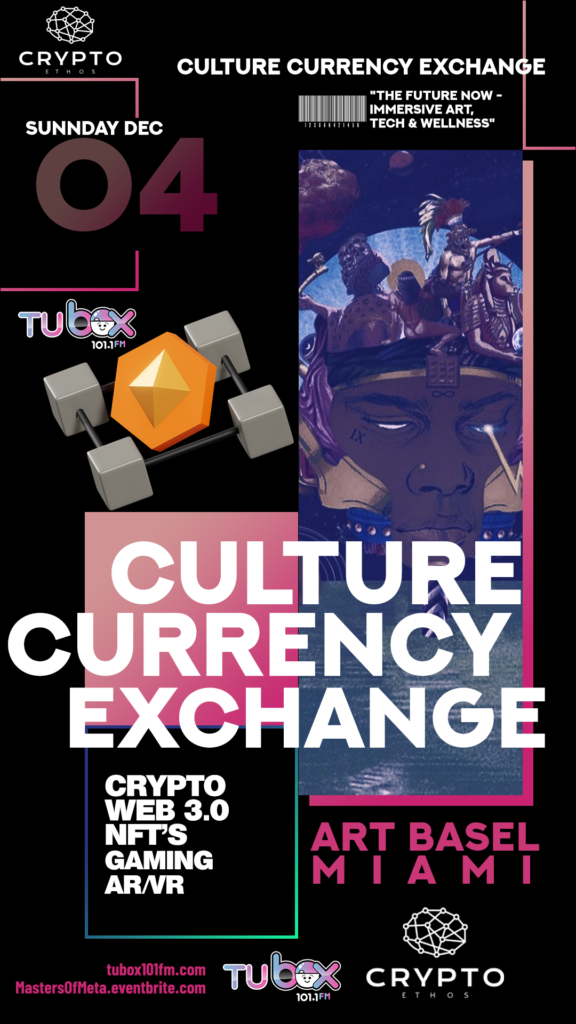 Join us as we discuss the culture of Gaming, Web 3.0, Crypto Currency, NFT’s, AR/VR, Live Metaverse Activations and Generational Wealth opportunities during Art Basel MIAMI 2022.