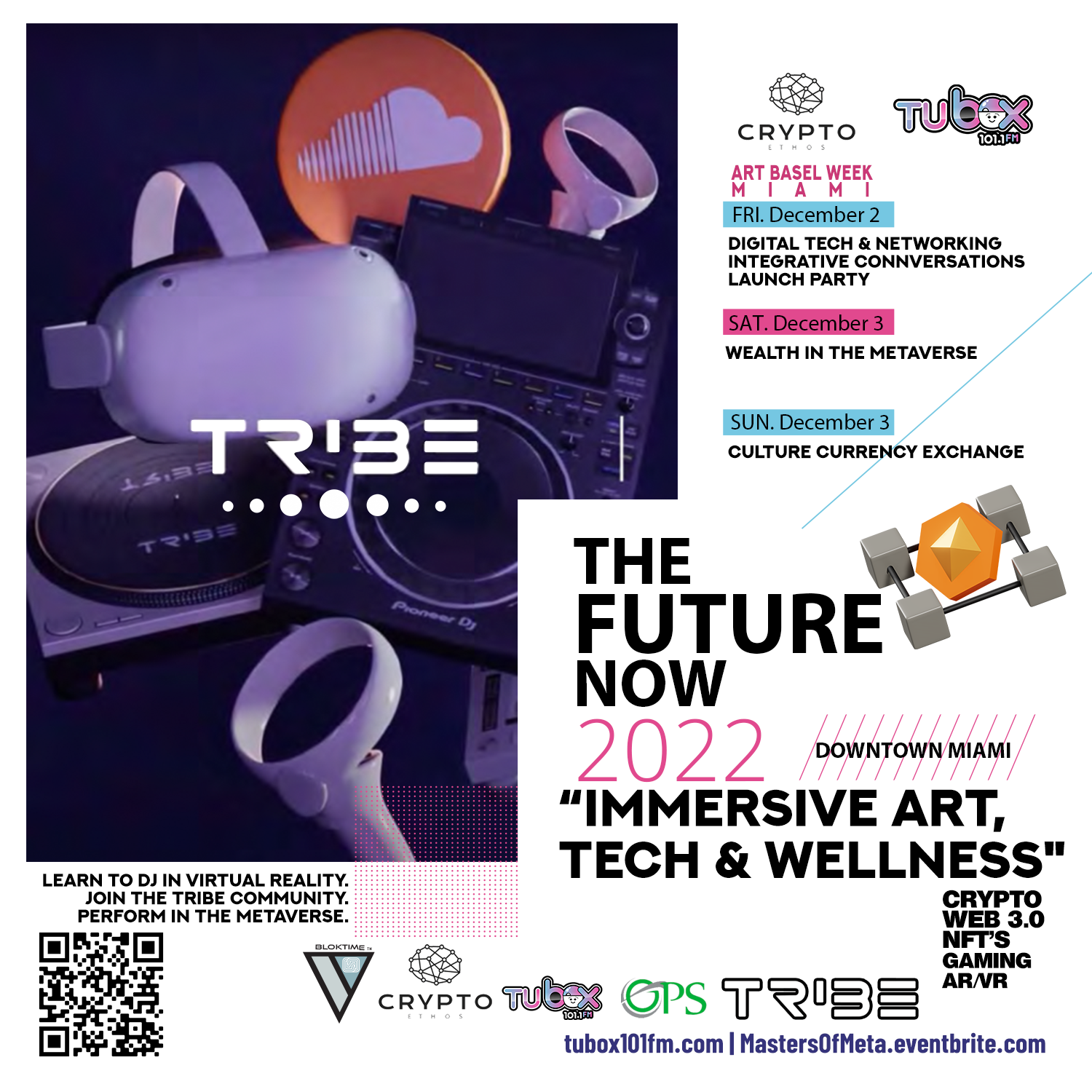 Hosting Venue Tubox is a State of the Art Multimedia Facility/Decentralized Radio Station built for Broadcasting, Podcasting, Live Performances, Workshops and Special Events. Our Sessions will be in a commercial size Green Room for a unique Metaverse vibe along with other production studios providing immersive experiences. Guest will be sure to have all your senses pleased with complimentary Culinary Art tastings and special Art of the Mix cocktails. Tubox is conveniently located in Downtown Miami and a 15 minute uber away from Wynwood Arts District.